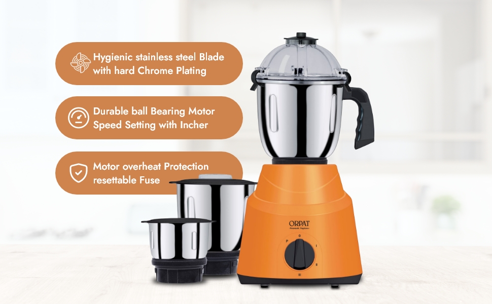 An Elegant Mixer that features a number of distinctive characteristics like a compact design with an elegant look, Jar lock safety switch, 3 speed setting with inches, anti-Skid feet, Tetra flow technology for fast grinding, hygienic stainless steel blending & amp;amp; Liquidizer jar (1.5 Litre capacity), hygienic stainless steel wet grinder jar (1 Litre capacity) and a hygienic stainless steel dry & amp;amp; Chutney grinder jar (0.5-litre capacity), motor overheat protection resettable fuse, overload prevention mechanism, Easy to clean mixer body, Hygienic stainless steel blades with hard chrome plating,It consists of a 1200 watt powerful and durable double ball bearing motor. A very compatible and acceptable product to daily users.
