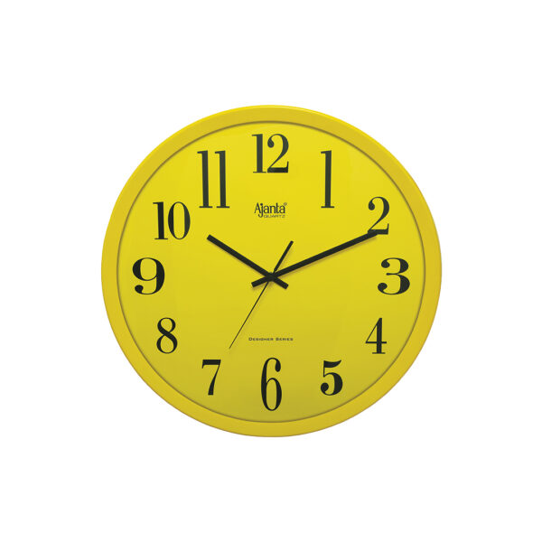 A glossy designer sweep clock featuring aristocratic and stylish looking quarterly roman numbering and arms. The clock gives a message