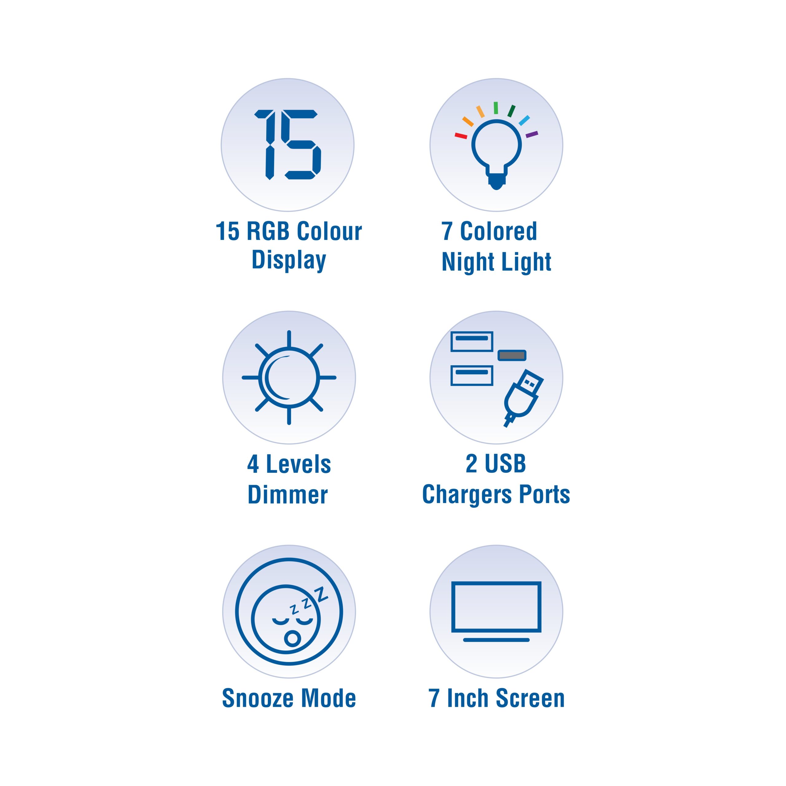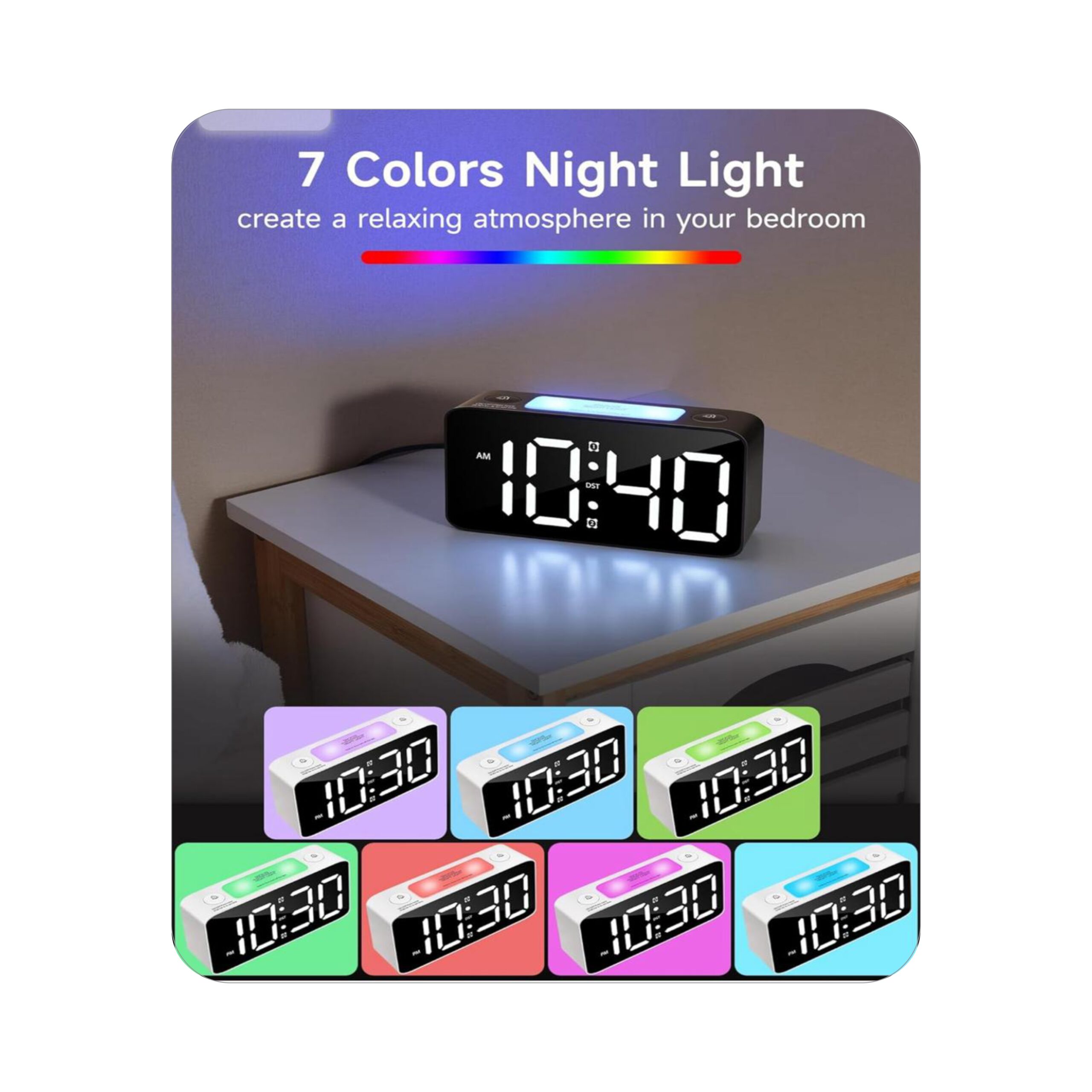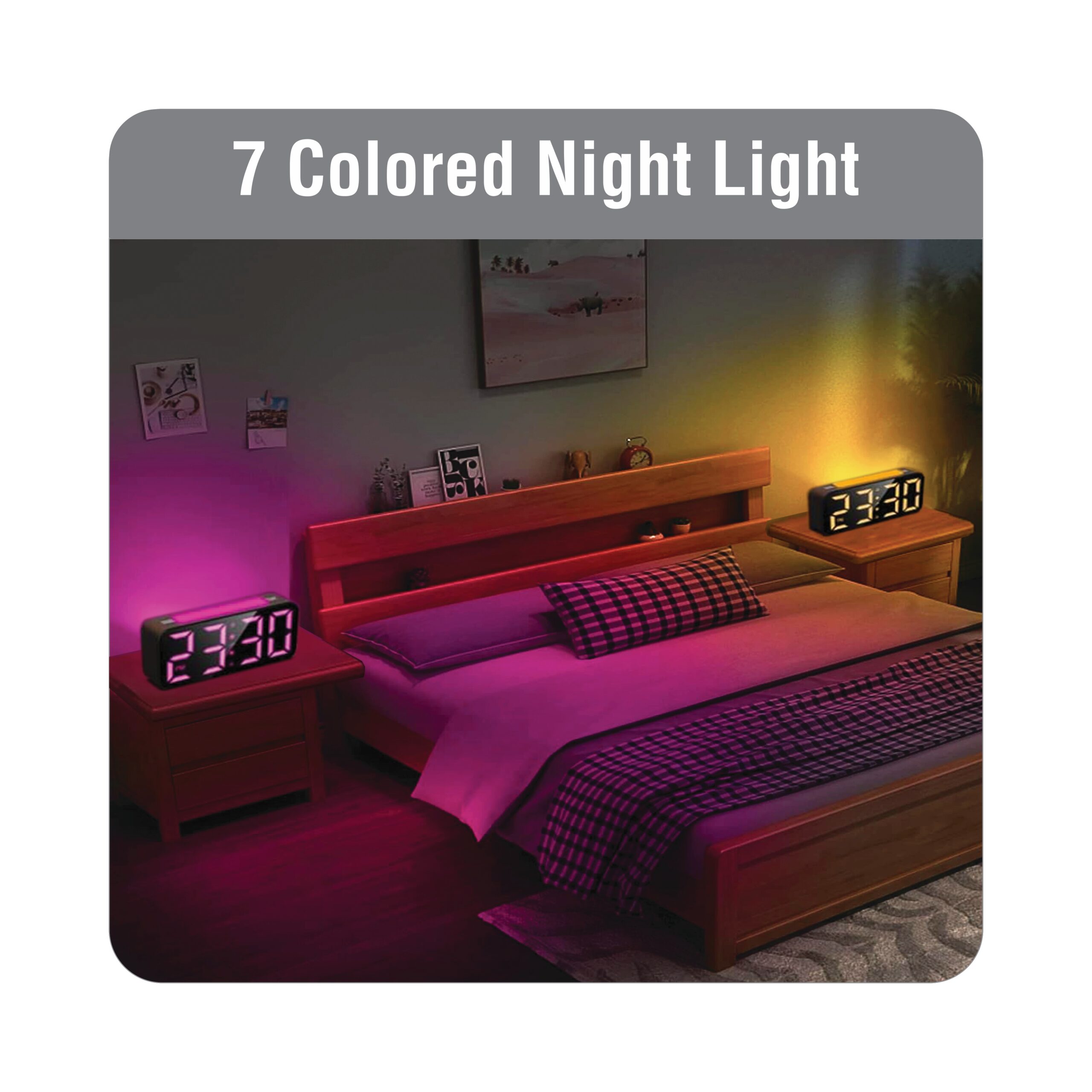 Digital clock with 7 colour nightlight, 15 Colour Display Light