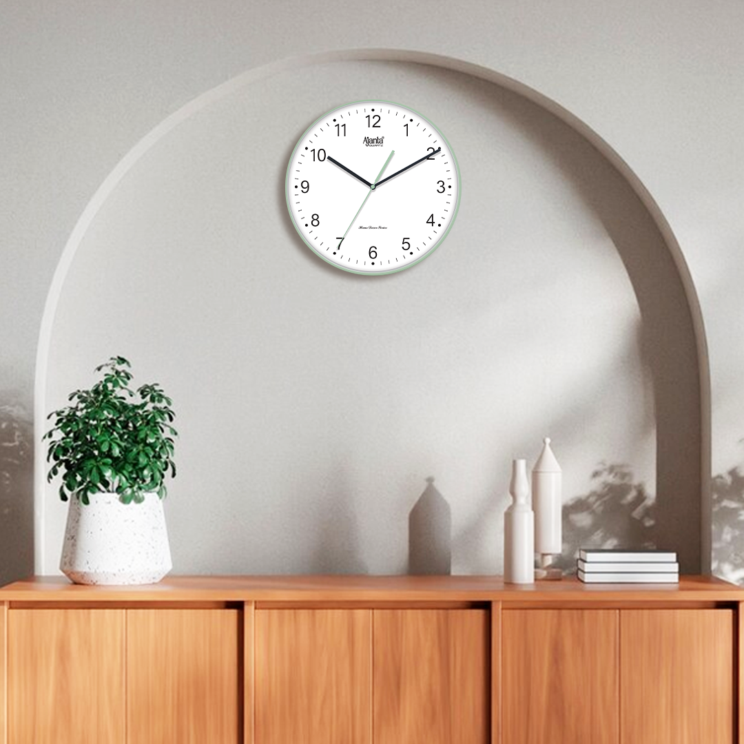 Large black numbers against white face creates easy viewing from every angle.Easy To Hang.The perfect wall clock for the kitchen, office, conference room, school classroom, family room, bedroom, nursing home, bathroom or any space.Silent non-ticking mechanism with sweeping movement. enjoy a quiet environment!
