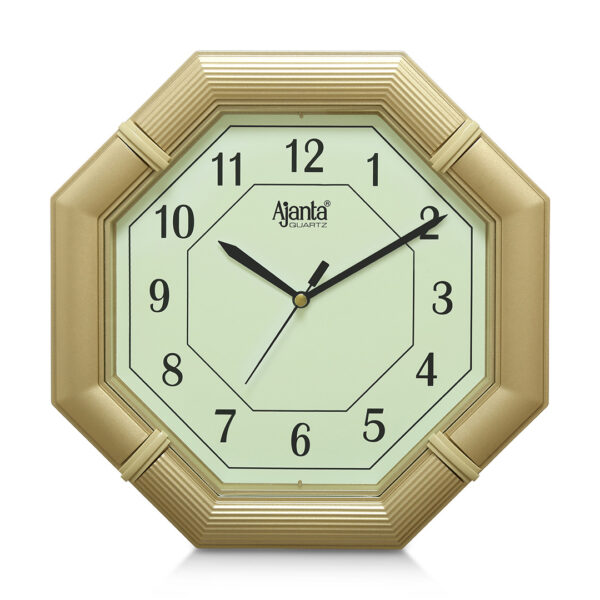 An octagonal simple clock that features a uniform body that holds a bold and distinctive numbering. An elegant and clear theme and an