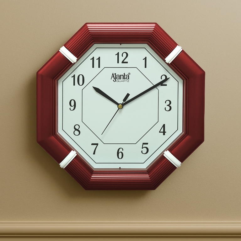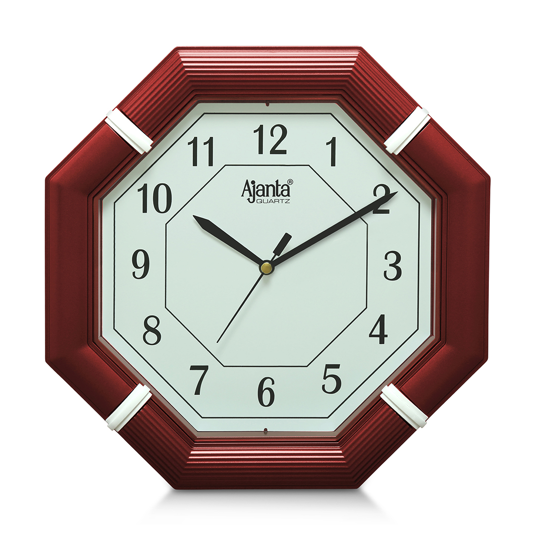 An octagonal simple clock that features a uniform body that holds a bold and distinctive numbering. An elegant and clear theme and an